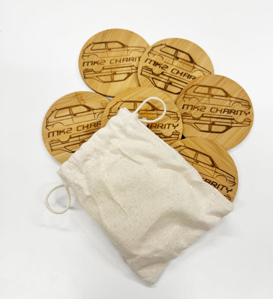 MK2 Charity Untersetzer-Set – 6 Bambus-Untersetzer im Jutebeutel