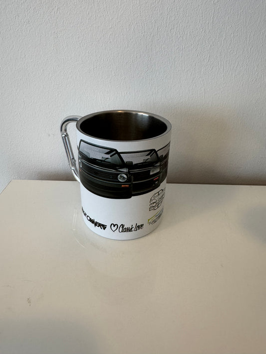 MK2 Charity Stahltasse – Vintage-Look mit Karabiner