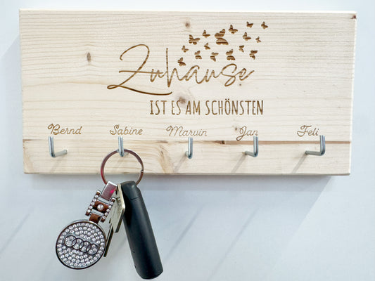Personalisiertes Schlüsselbrett aus Fichte/Tanne – ca. 24,7 × 12,3 cm