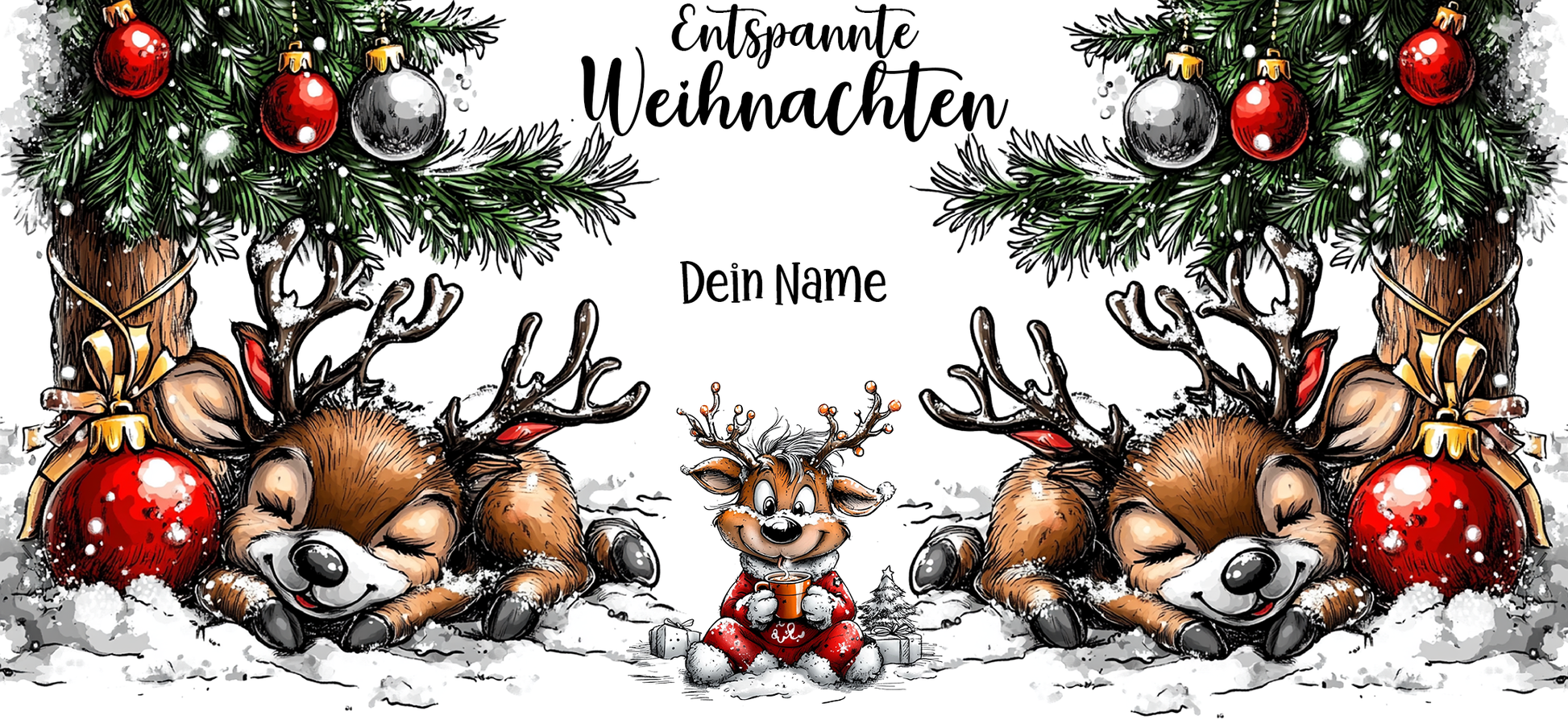Tasse "Entspannte Weihnachten – Schlafende Rentiere"