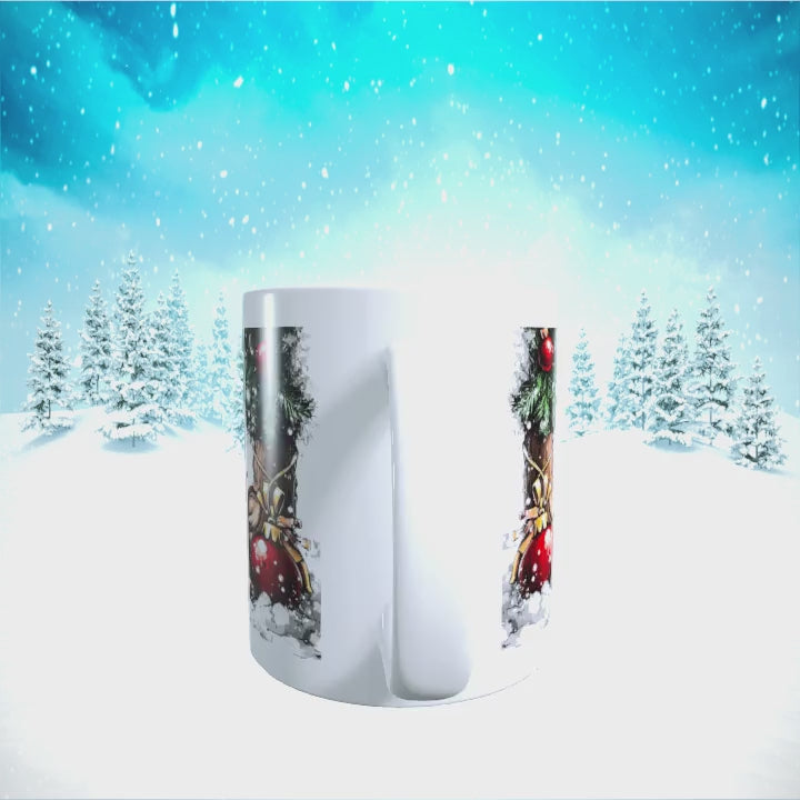 Diese weiße Weihnachtstasse strahlt pure Ruhe und Gemütlichkeit aus.