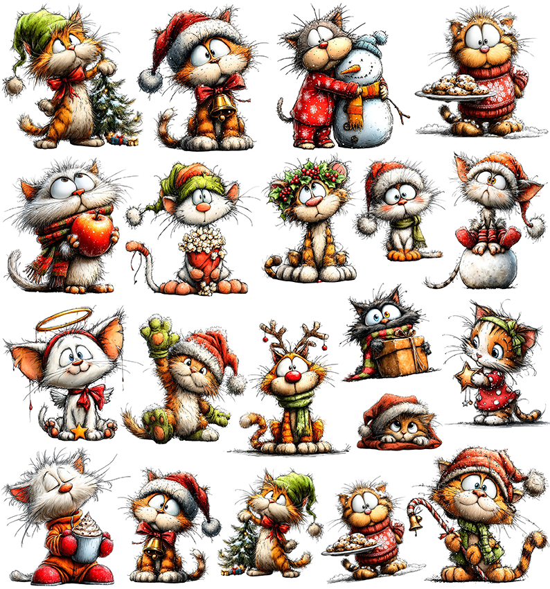 UV-DTF Stickerbogen mit weihnachtlichen Katzen-Motiven
